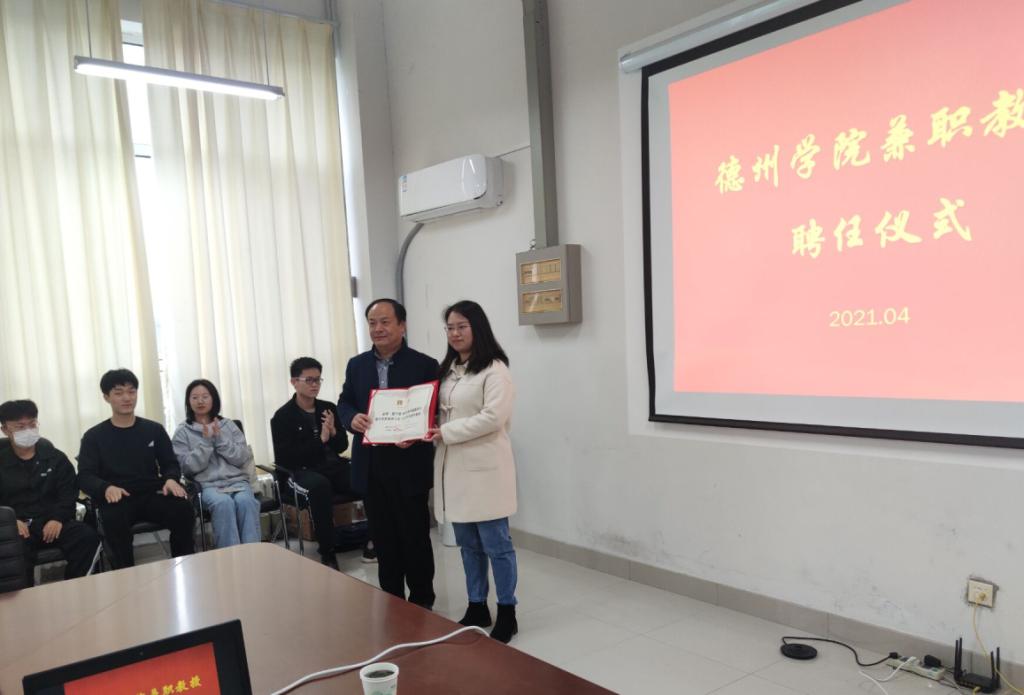 为加强学科专业建设和师资队伍建设,4月2日,世界杯体彩在启智楼0365室举行“特聘教授聘任仪式”,德州跃华学校杜成才老师、赵路洋老师、世界杯体彩党总支书记赵庆福、院长刘汉平、副院长邹艳出席聘任仪式。