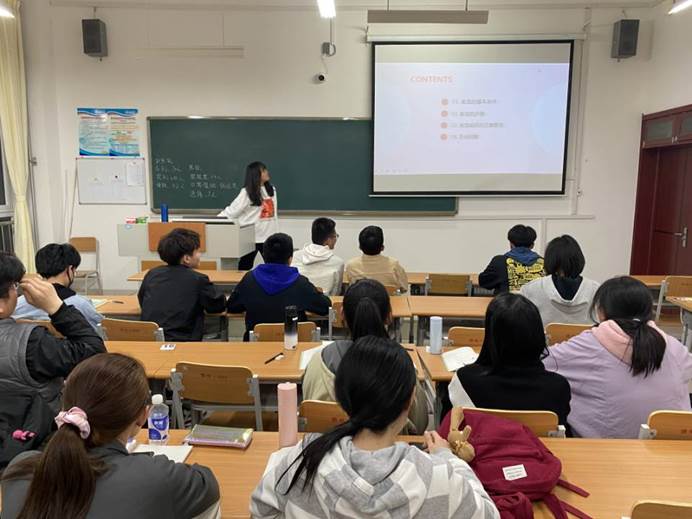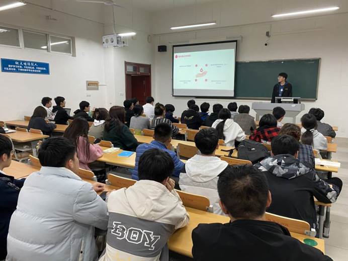 宣讲会上,青志部成员以图片宣传为主,配合以奉献为主题的乐曲,以此来激发同学们奉献的精神。同学们仔细阅读着PPT上的内容,并与宣传人员进行深刻交流以加深了解。经过宣传人员详细地介绍,同学们了解到适量的献血不仅对身体无害,反而有益于改善自己的身体状况,是对自身健康的长远“投资”,引起同学们的强烈反响。本次宣传活动时间虽然短暂,但却让同学们了解到献血的必要性。