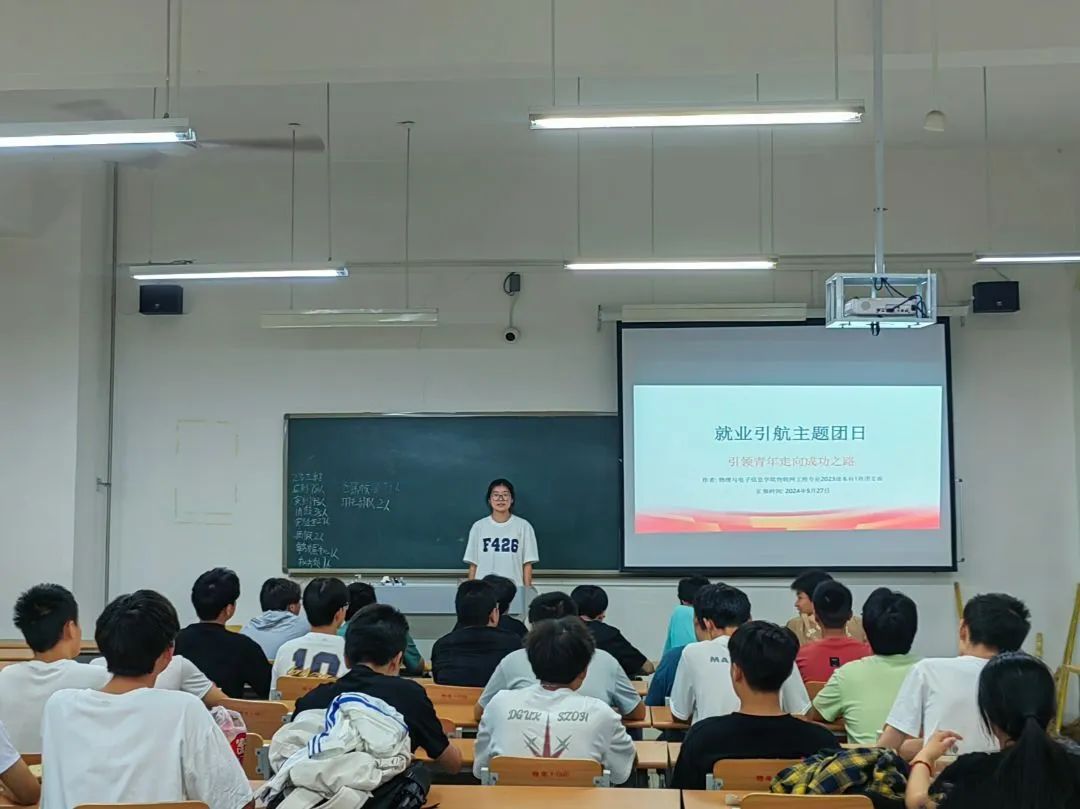活动中,各班级团支书详细介绍了 “大学生就业引航计划”的背景和重要 意义,并组织学生观看就业类视频, 让同学们更加明确认识当前就业形 势、就业技巧以及相关政策,同时结 合现阶段市场需求、社会形势帮助同 学们分析就业市场前景,引导青年大 学生深入了解专业前景,树立正确的 就业观念,规划职业生涯,提升核心 竞争力。