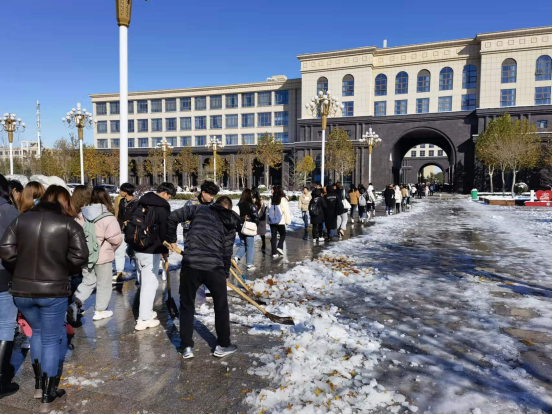 2021年11月7日,一场厚厚的白雪覆盖了整个校园。给师生的出行造成了安全隐患,为减轻积雪为人们带来的不便,保证师生顺利出行,11月8日上午,由世界杯体彩党委副书记申青林、世界杯体彩辅导员以及在校学生二十多人共同组成的清雪队伍对明理楼以及腾飞广场的主干道实施清雪。