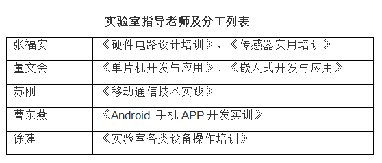 实验室配备有计算机、示波器、电子测试仪器、小型机床、雕刻机、3D打印机,多功能信号源等多种实验设备。不仅可以进行创新实践,也适合电子类相关专业开展实训项目。本实验室采用教师指导,学生自我管理的模式,目前实验室有指导老师5人,长期开展的大学生创新培训课程有:硬件电路设计培训,传感器使用培训,单片机开发与应用培训及ARM嵌入式应用技术培训,Android 手机APP开发实训,每年参加实验室培训的学生约150人。实验室积极鼓励并组织学生参加各级各类大学生科技竞赛,近两年获得国家级、省部级奖励达100余项。