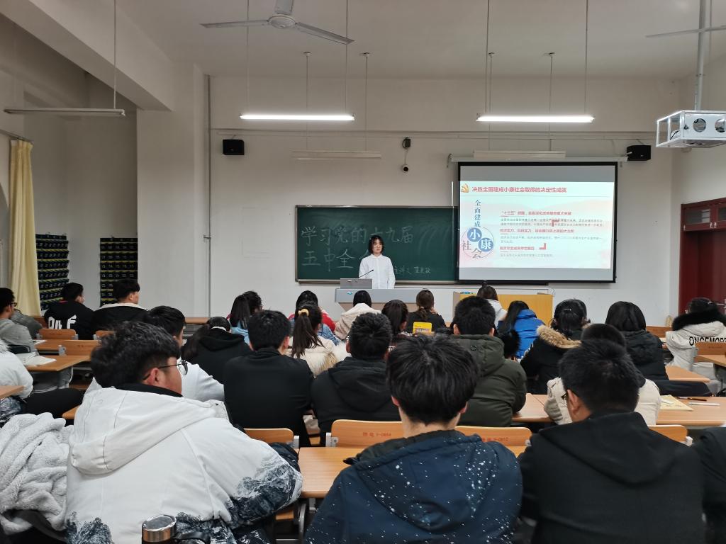会议主要学习了我国开展全面建设社会主义现代化国家的新阶段与新目标、新理念与新部署、新变化与新格局,明确了十九届五中全会对“十四五”规划以及2035年远期的国民经济与社会发展的目标和方向。此次会议过程中,同学们认真听讲,专心记录,纷纷表示要认真学习全会精神,树立远大志向,不负韶华,奋发图强,以昂扬向上的精神奋进新时代。