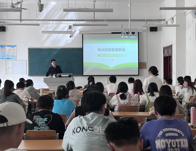 5月13日物理学专业邀请了德州市第一中学高一年级主任、山东省优秀班主任、齐鲁名班主任王振老师针对中学班级管理对物理师范生进行了指导。王振老师结合自身经历,从树威信聚人心、洒爱心得人心、立规矩浸人心、以惩戒磨人心、会激励动人心、勤疏导暖人心六个方面向学生讲解了班级管理的相关知识,鼓励同学们做一个有理想信念、道德情操、扎实学识以及仁爱之心的“四有好老师”。